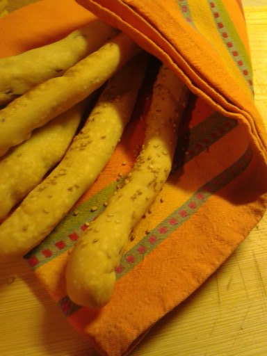 Se, come è successo a me, vi avanza dell’impasto, tagliatelo a tocchetti da cui ricavare dei cilindretti che disporrete sulla teglia foderata di carta da forno, spennellate con un poco d’olio e cospargete con semi di sesamo, otterrete dei bei grissoni rustici! GNAM!